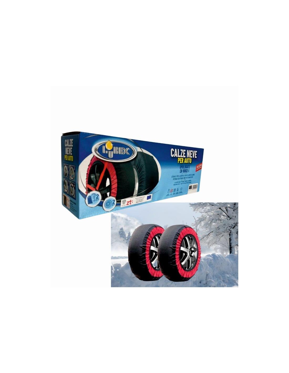 Caratteristiche: Alta resistenza, ottima presa in tutte le condizioni, adatte sia per pneumatici invernali che estivi, omologate EN 16662-1, montaggio rapido e semplice, lavabili in lavatrice, guanti per il montaggio inclusi