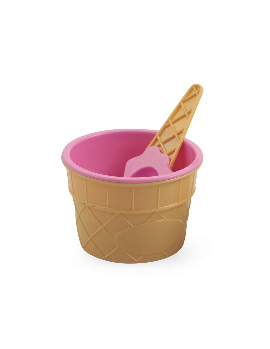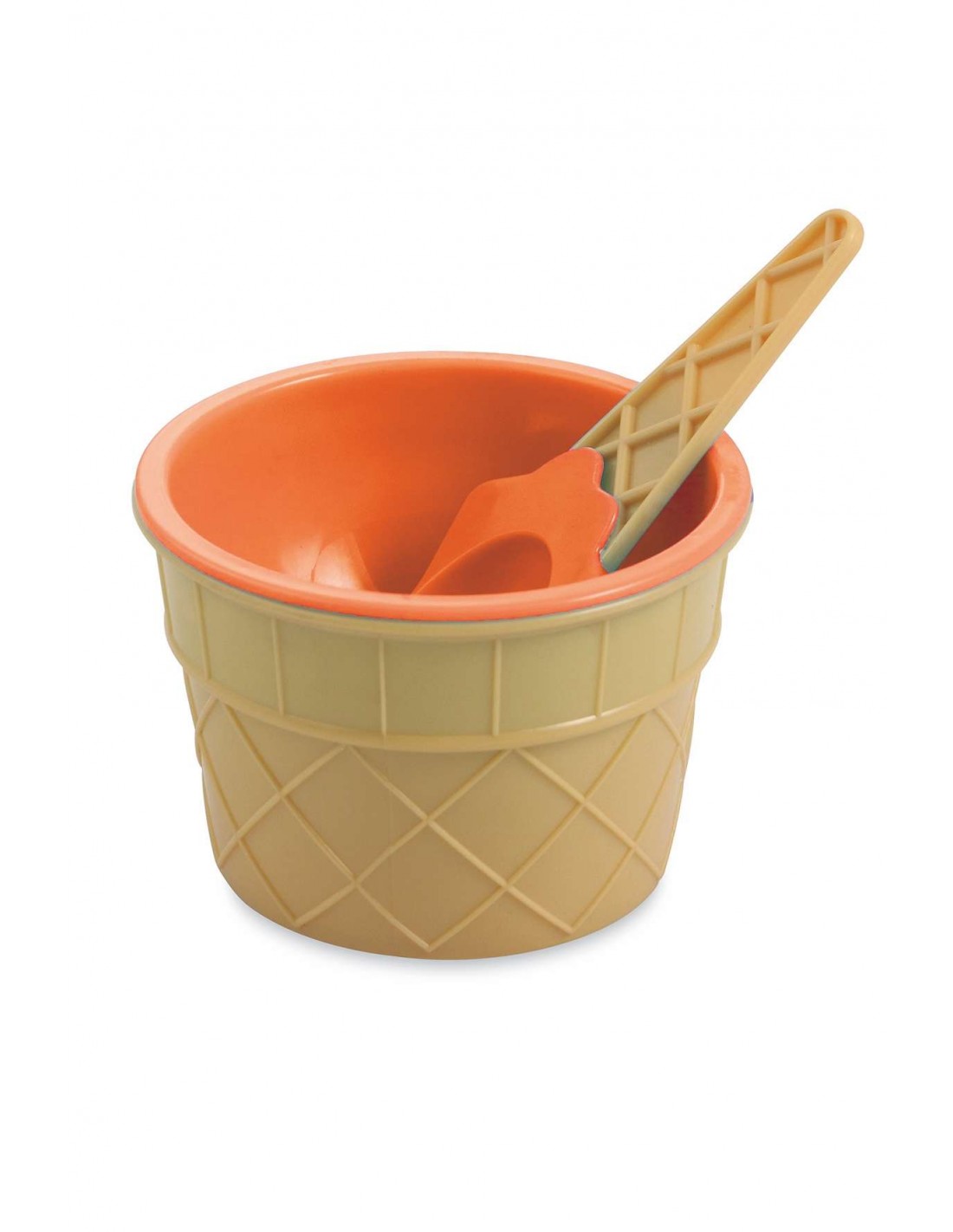 Con cucchiaino a forma di cono gelato.